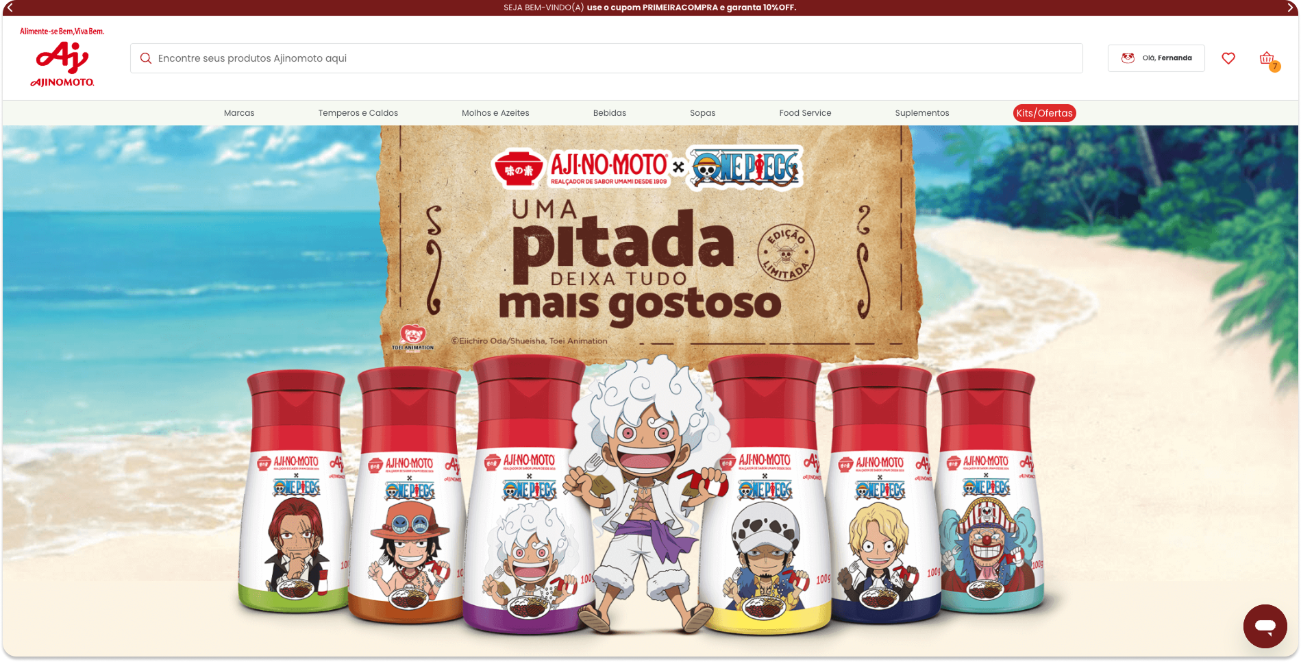 A Ajinomoto confiou à Nerau o desenvolvimento da landing page da campanha em collab com One Piece, com o objetivo principal de impulsionar as vendas da edição especial do produto Ajinomoto realçador de sabor, cujas embalagens traziam personagens do anime.